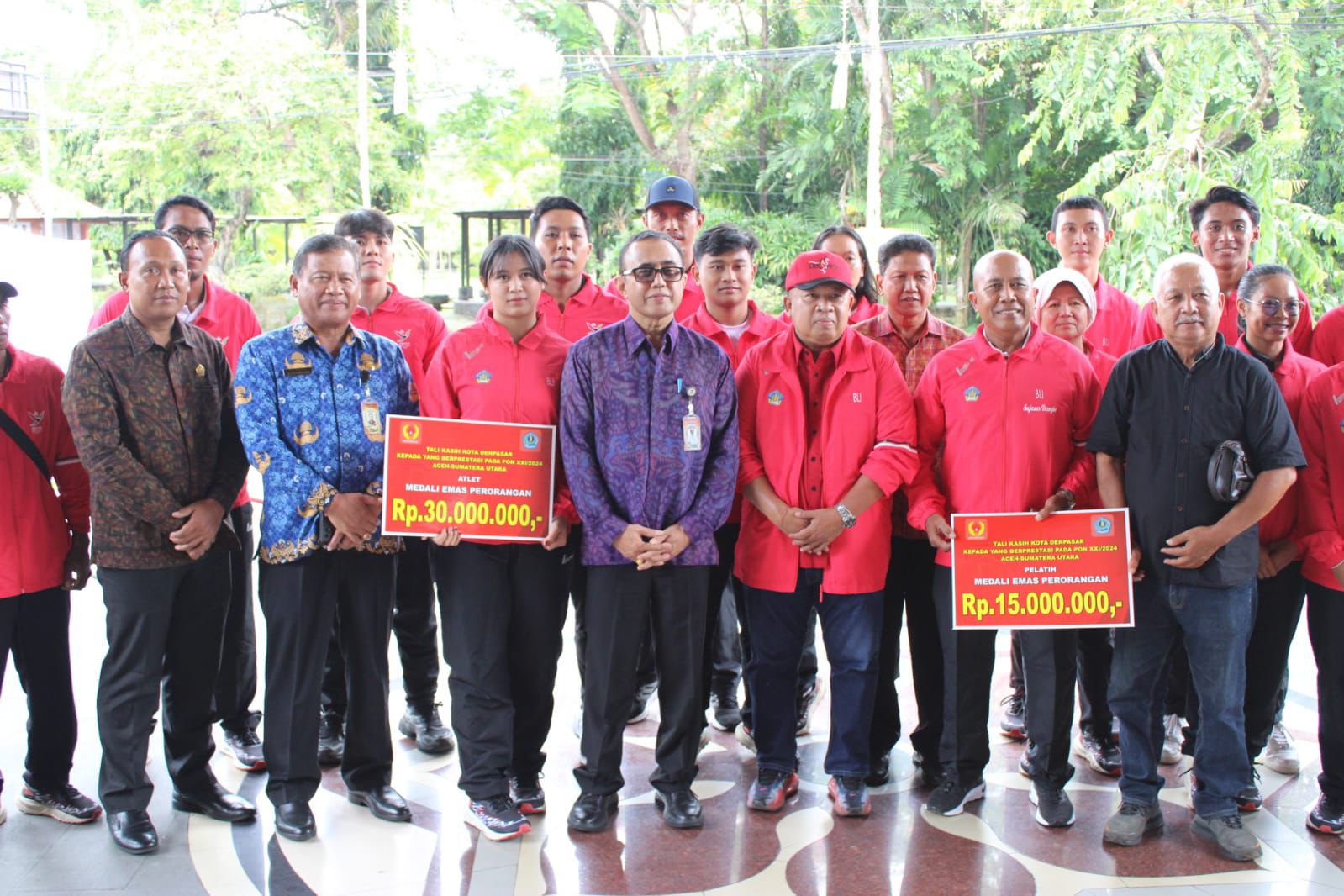 Sukses Berlaga di PON Aceh dan Sumatera Utara, Wali Kota Jaya Negara Serahkan Bonus Atlet dan Pelatih