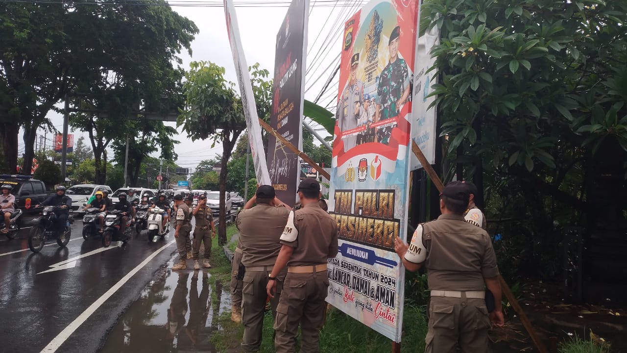 Langgar Aturan, Satpol PP Bali Berabgus Puluhan Baliho dan Spanduk Liar