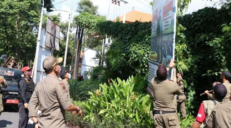 DENPASAR, SERBIBALI.COM – Kepala Satuan Polisi Pamong Praja (Pol PP) Provinsi Bali Dewa Nyoman Rai Dharmadi bekerjasama dengan TNI-POLRI dan instansi terkait melakukan penertiban sejumlah baliho yang masuk kategori kadarluasa, kondisi sudah tidak layak (robek, melewati batas waktu, sudah tidak layak dan tidak sesuai peruntukkan), di seputaran Kota Denpasar, Senin (11/1).