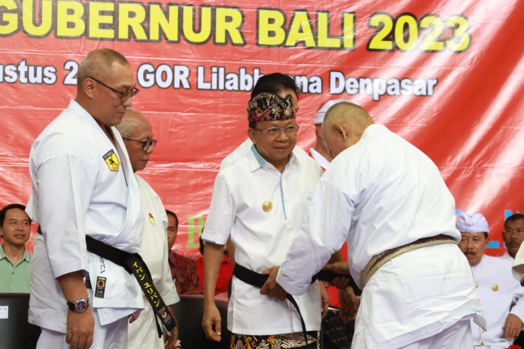 Serbibali.com, Denpasar – Gubernur Bali, Wayan Koster dianugerahi Sabuk Hitam oleh Institut Karate-Do Indonesia (INKAI) sebagai wujud tanda kehormatan INKAI kepada Murdaning Jagat Bali asal Desa Sembiran, Buleleng, atas jasanya di dalam mendukung kemajuan INKAI di Provinsi Bali.